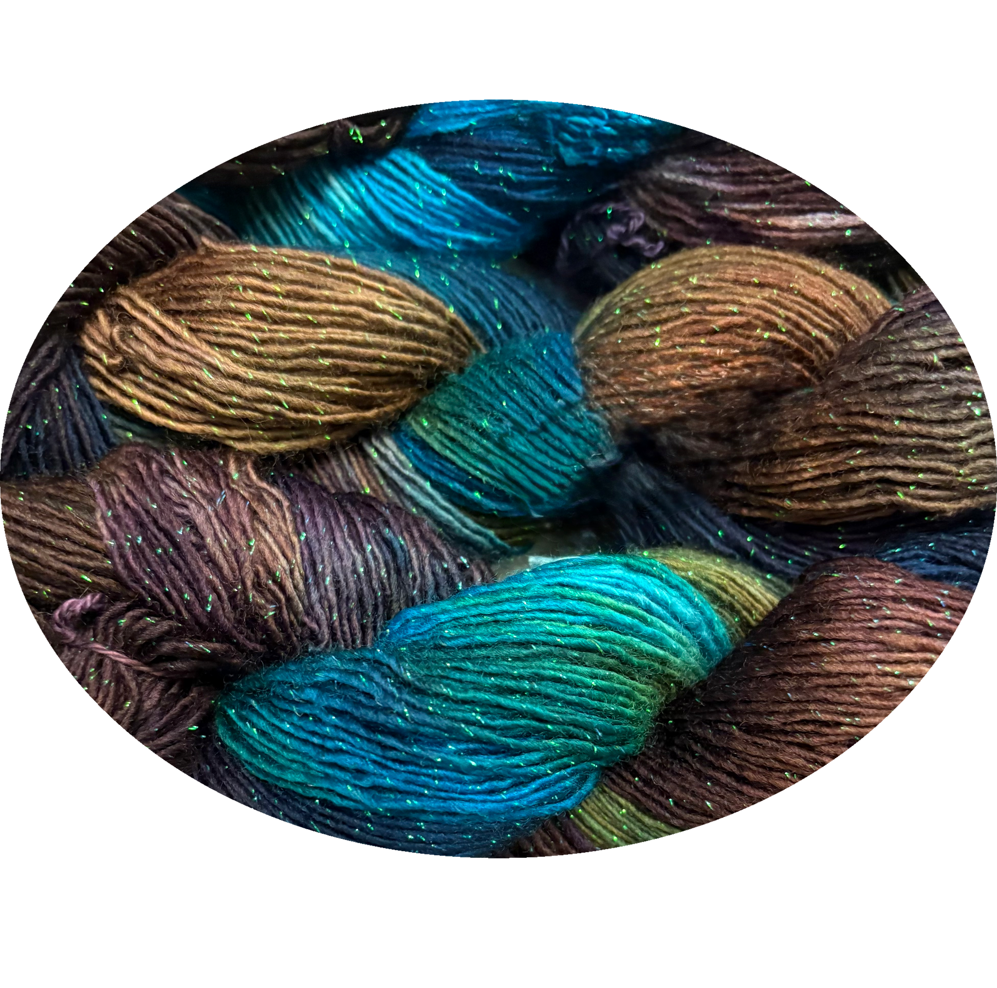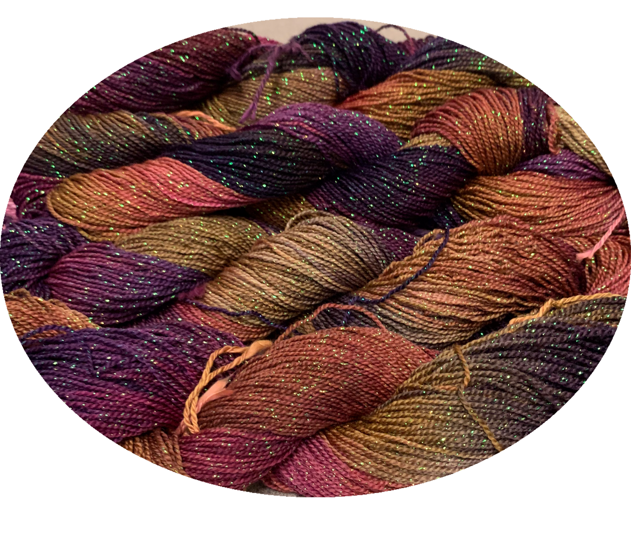 Twinkle Toes is a sock weight yarn with a little sparkle.225 yards per skein. 2 ounces per skein. It is composed of 88% super wash merino and 12% Lurex.