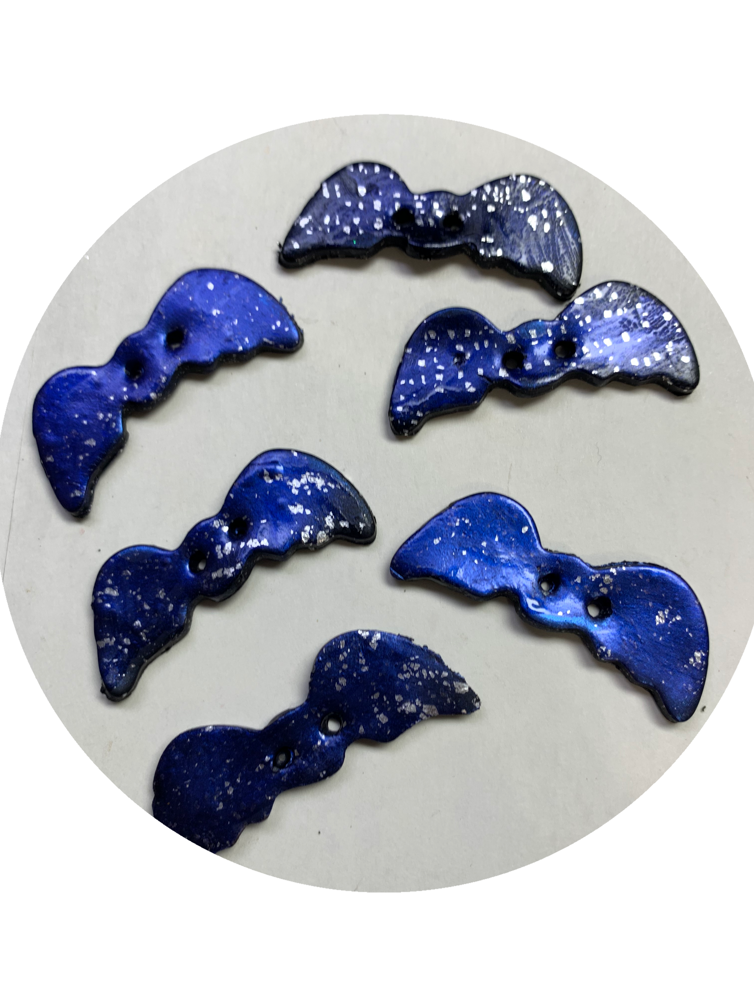 These Midnight Bats are made of polymer clay with silver leaf .Thet measure 13/4”by 1/2” tall.