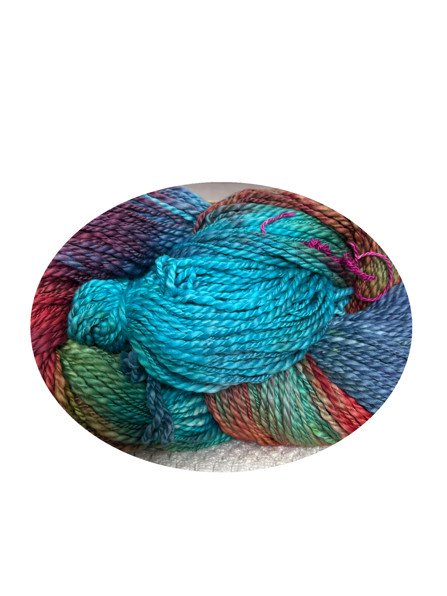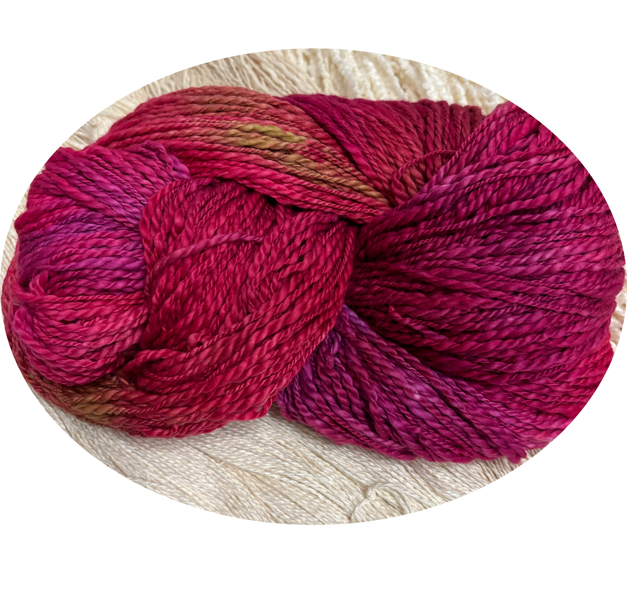 Peru is an organic cotton which has a thick and thin texture .Each skeins is 320 yards and weighs 8 ounces. I would consider Peru a chunky cotton that can be knitted with an eight to ten needle range.